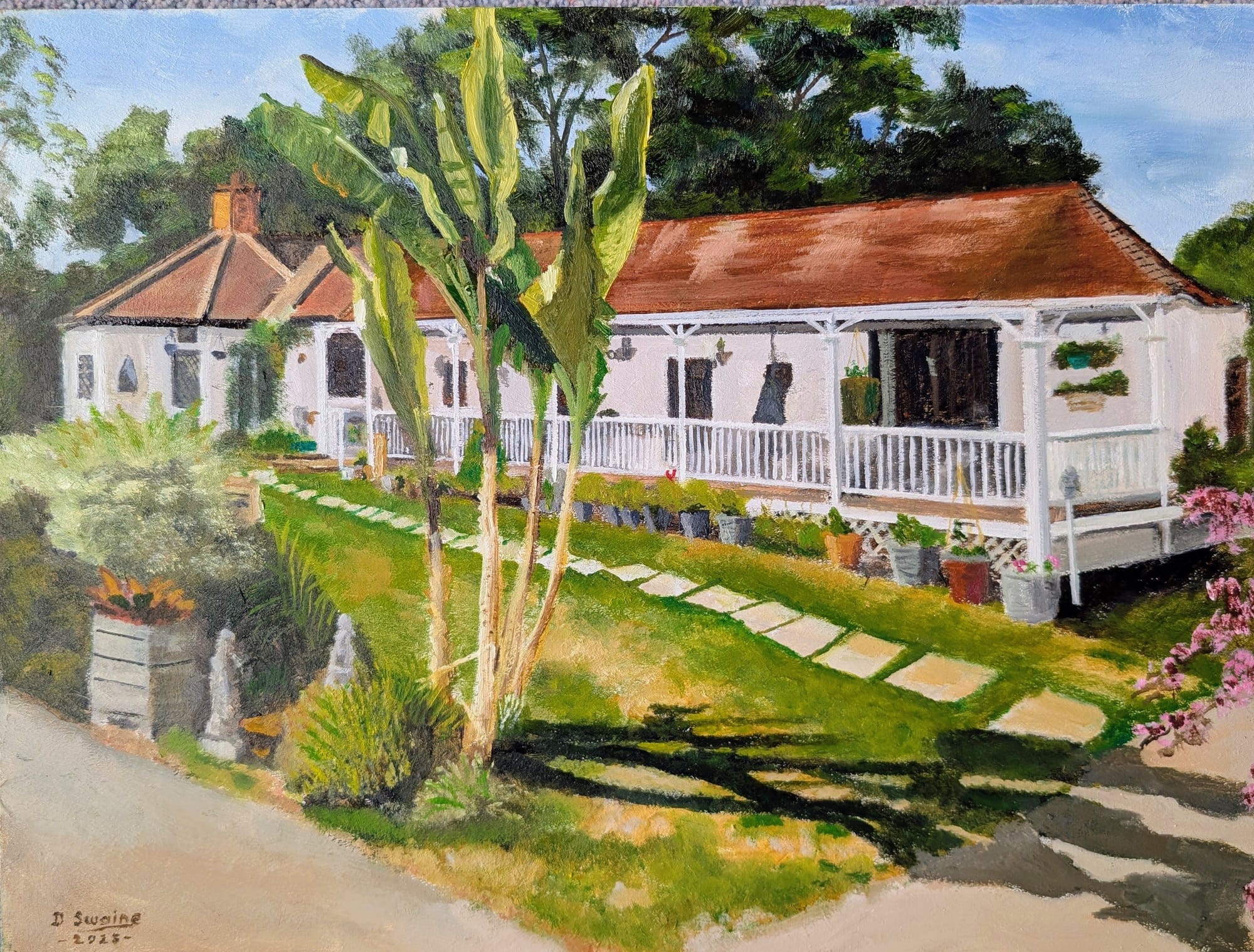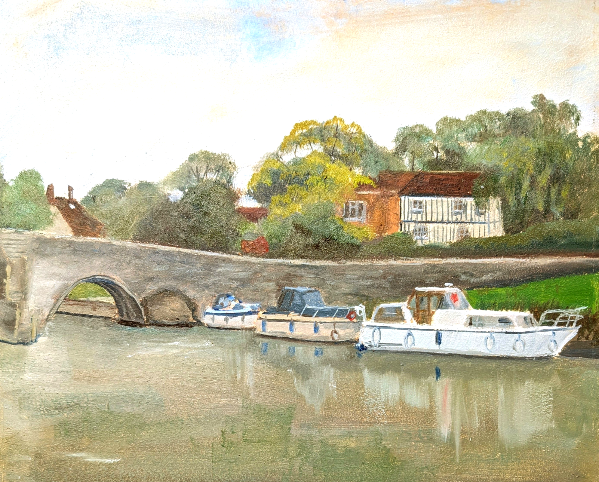 I tend to paint en plein air in the summer and concentrate on studio work in the winter. I like to paint any subject and have done several pictures of private houses and many portraits of all ages. I have also painted dogs, horses and other animals.